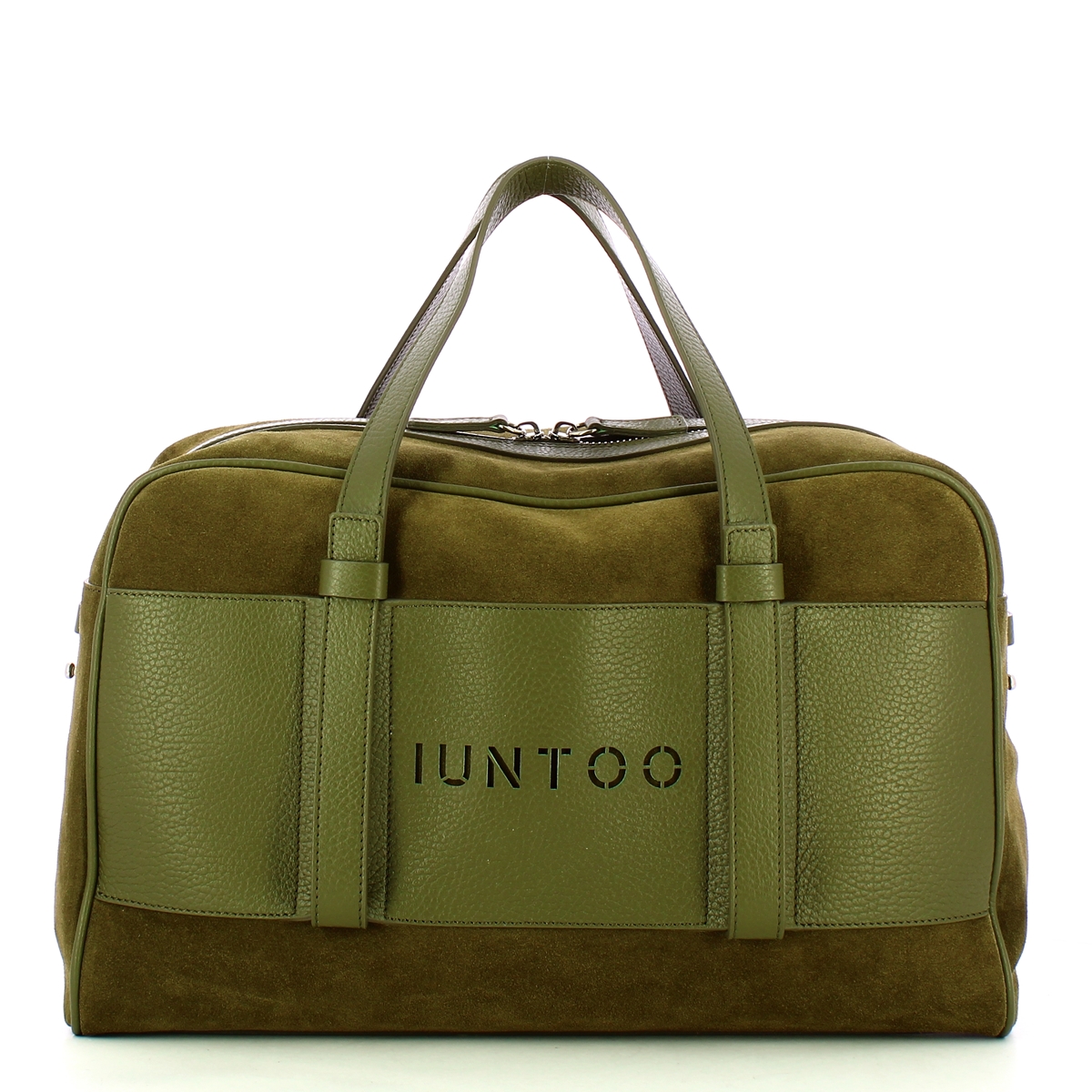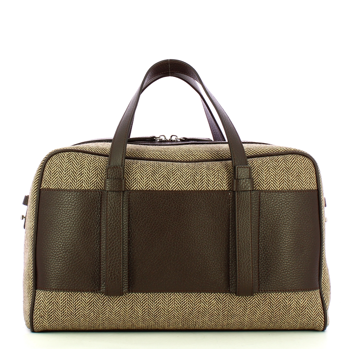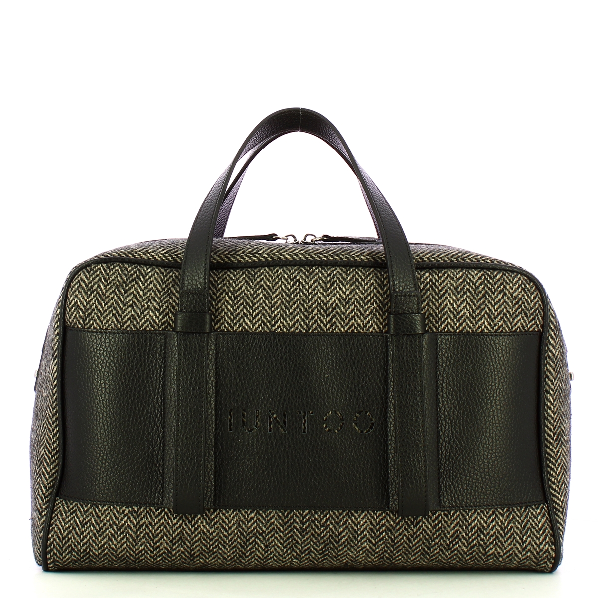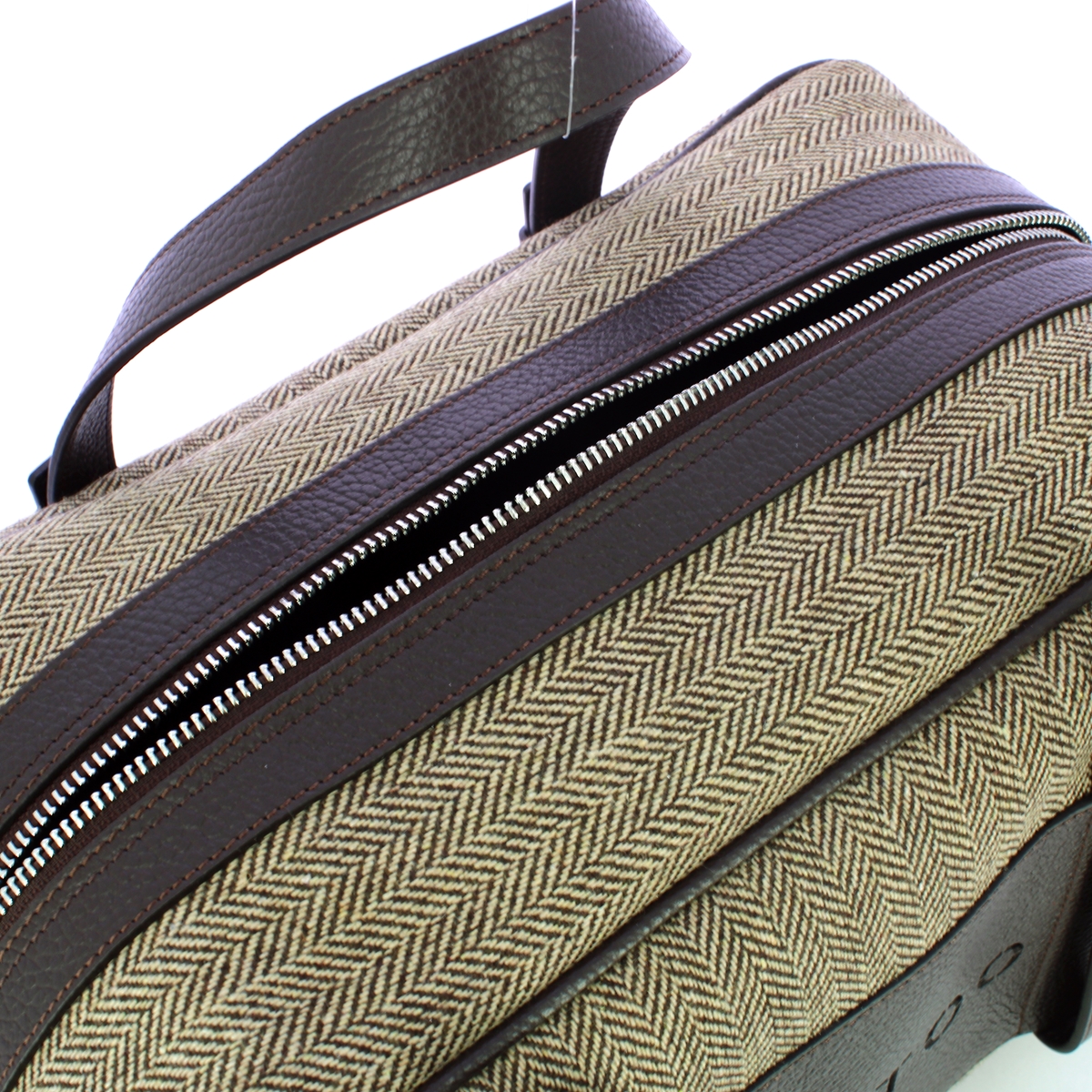 Bauletto Priora Grande Spigato Testa Moro Iuntoo, spazioso accessorio organizzato ed elegante, realizzato in vera pelle e in tessuto con trama spigata. Doppio manico e tracolla in pelle regolabile rimovibile. Comparto chiuso con cerniera e doppia tiralampo, interno foderato completo di tasca.