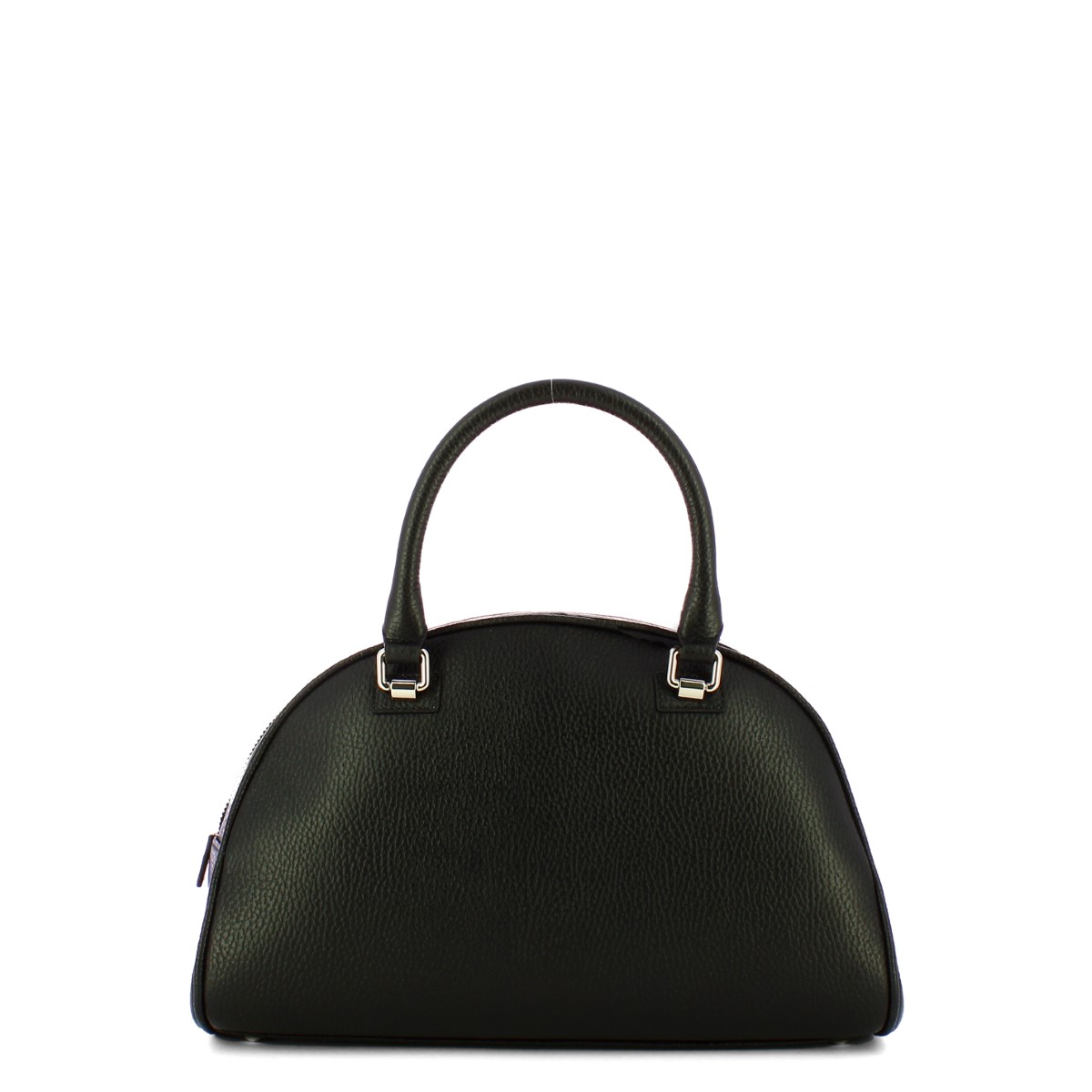Bowling Bag Grande Accattivante Nero Iuntoo, borsa a mano in pelle dal design caratteristico, che ricorda le iconiche borse da bowling. Dotata di doppi manici e tracollina regolabile e removibile, logo lettering frontale in metallo argentato e comparto con chiusura con cerniera e interno foderato, completo di tasche.