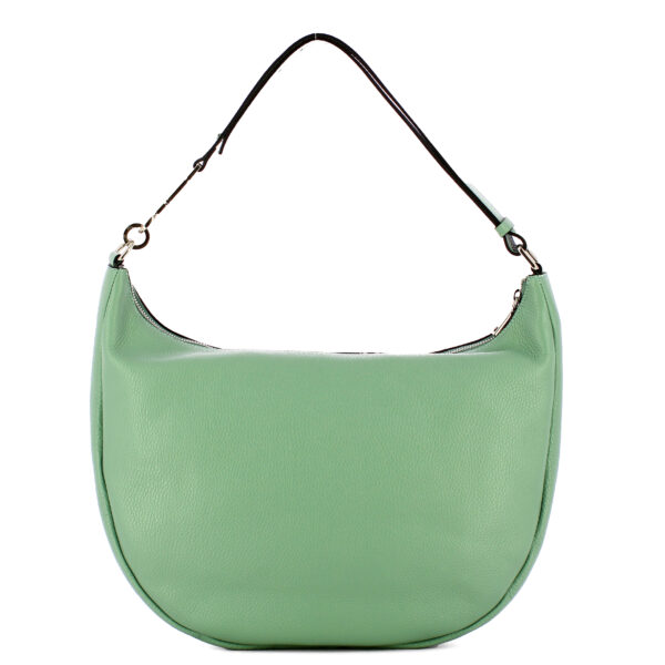 New Hobo Bag Grande Armonia Salvia Iuntoo, versatile e spaziosa borsa a spalla dal design semplice ed elegante. Realizzaa in pelle martellata, con manico singolo con inserto in metallo a forma di logo. Ampio comparto con cerniera, interno foderato e completo di tasche.