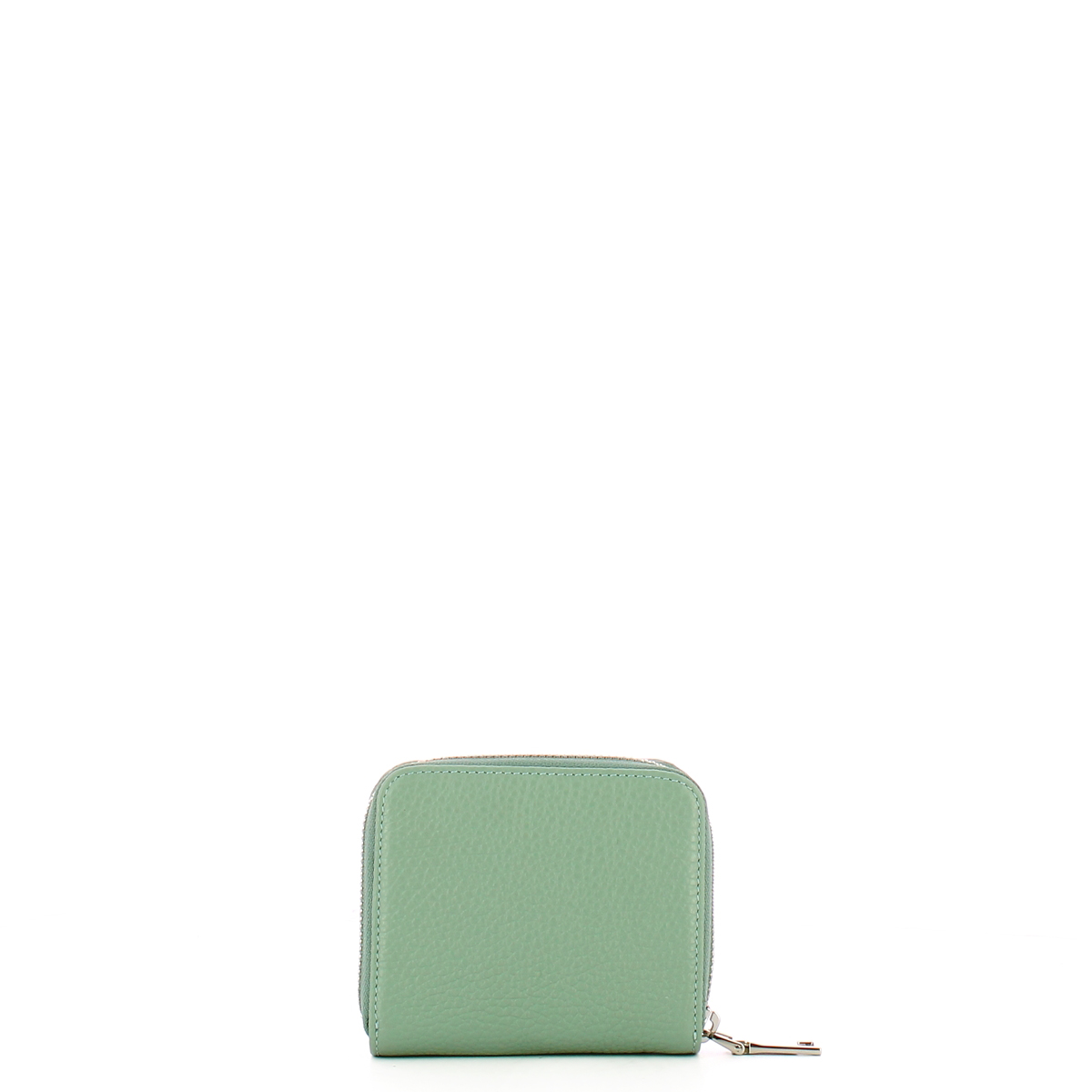 Portafoglio Due Comparti Armonia Salvia Iuntoo, versatile e compatto accessorio realizzato in pelle martellata, con logo lettering in metallo. Comparto principale con chiusura con clip e interno organizzato con spazio per banconote e carte di credito. Tasca posteriore con cerniera per le monete.