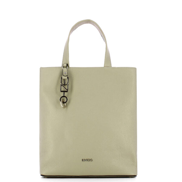 Shopper Verticale Grande Armonia Silice Iuntoo, moderna e spaziosa borsa a mano realizzata in pelle martellata, con ciondolo in metallo logato e doppi manici. Comoda tracollina regolabile e removibile. Comparto con chiusura con pattina interna e magnete, fodera e tasche.
